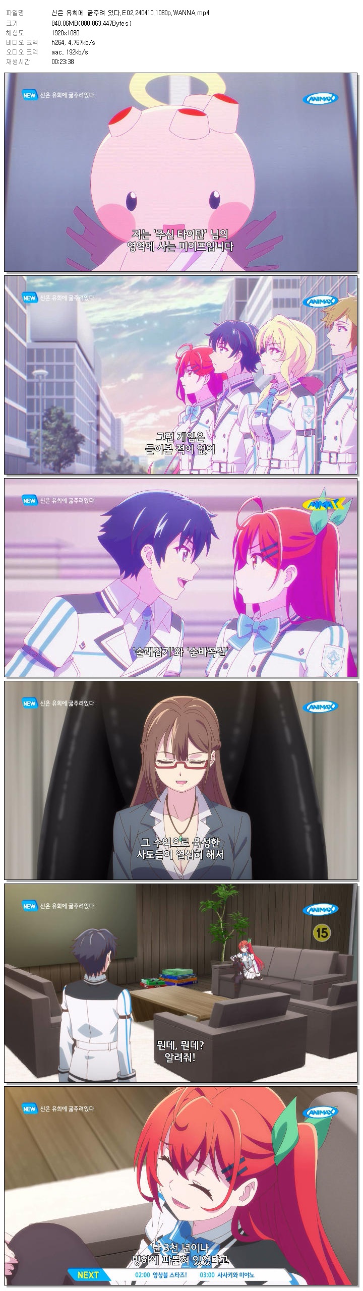 | 신은 유희에 굶주려 있다.E02.240410.1080p.WANNA.mp4 | 840.1 M | 00:23:38 | 1920x1080 |