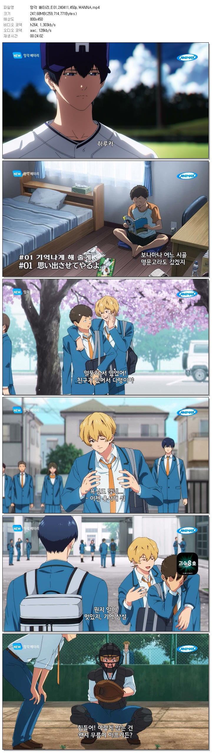 | 망각 배터리.E01.240411.450p.WANNA.mp4 | 247.7 M | 00:24:02 | 800x450 |