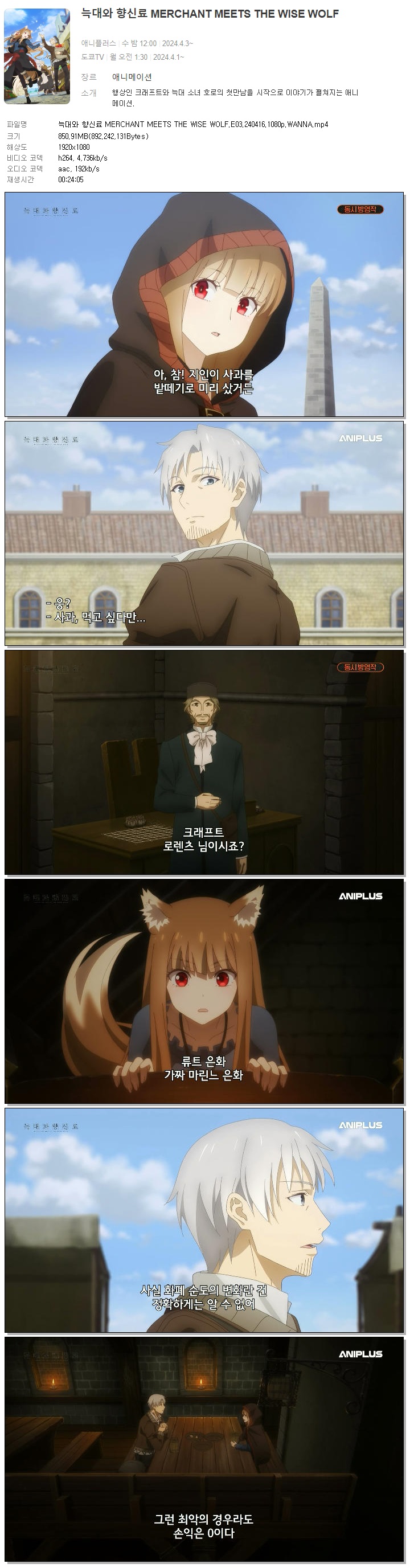 늑대와 향신료 MERCHANT MEETS THE WISE WOLF.E03.240416.1080p.WANNA 다시보기 토렌트