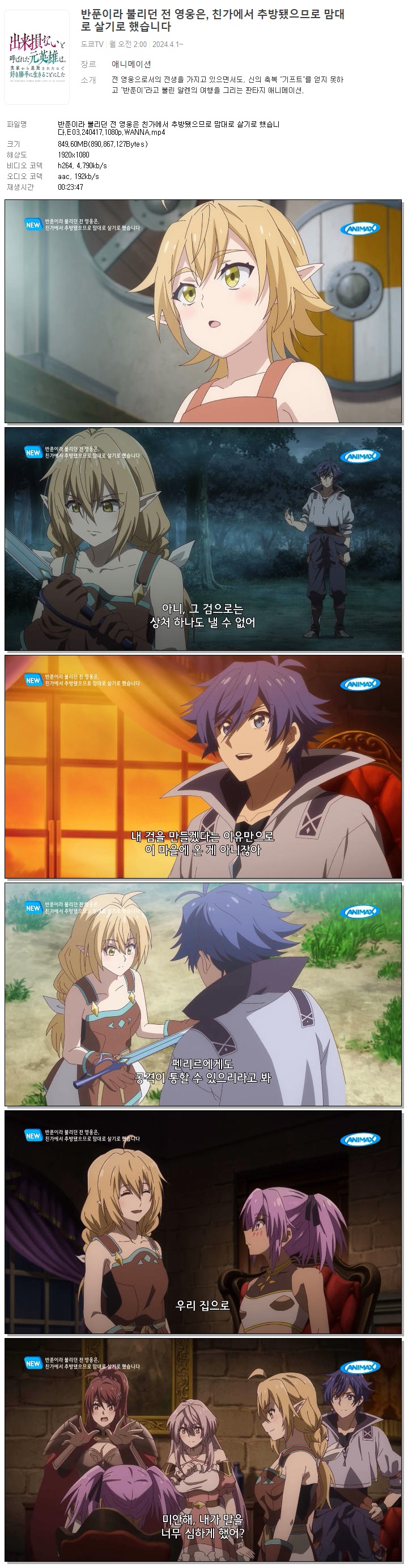 반푼이라 불리던 전 영웅은 친가에서 추방됐으므로 맘대로 살기로 했습니다.E03.240417.1080p.WANNA 다시보기 토렌트