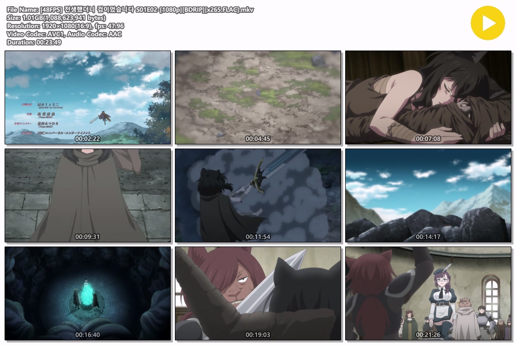 [48FPS] 전생했더니 검이었습니다 S01E02-[1080p][BDRIP][x265.FLAC].mkv 1 G 00:23:49 1920x1080