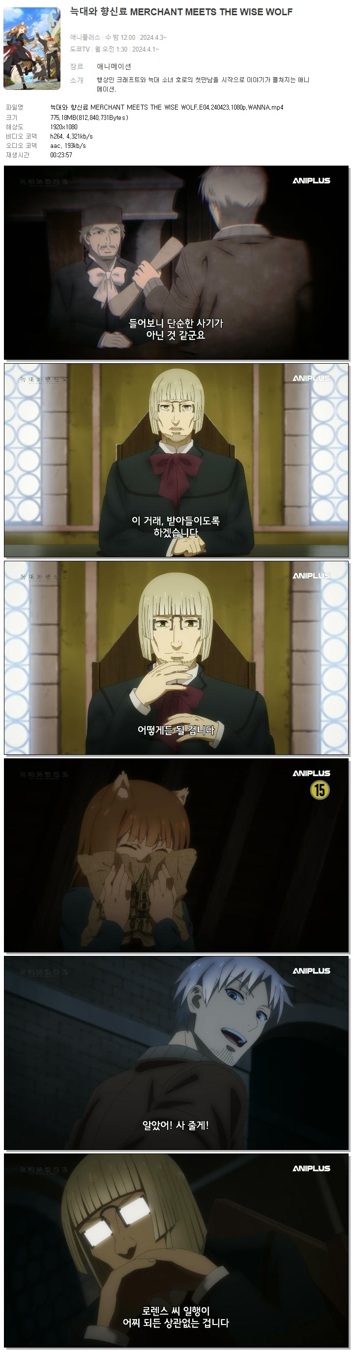 늑대와 향신료 MERCHANT MEETS THE WISE WOLF.E04.240423.1080p.WANNA 다시보기 토렌트