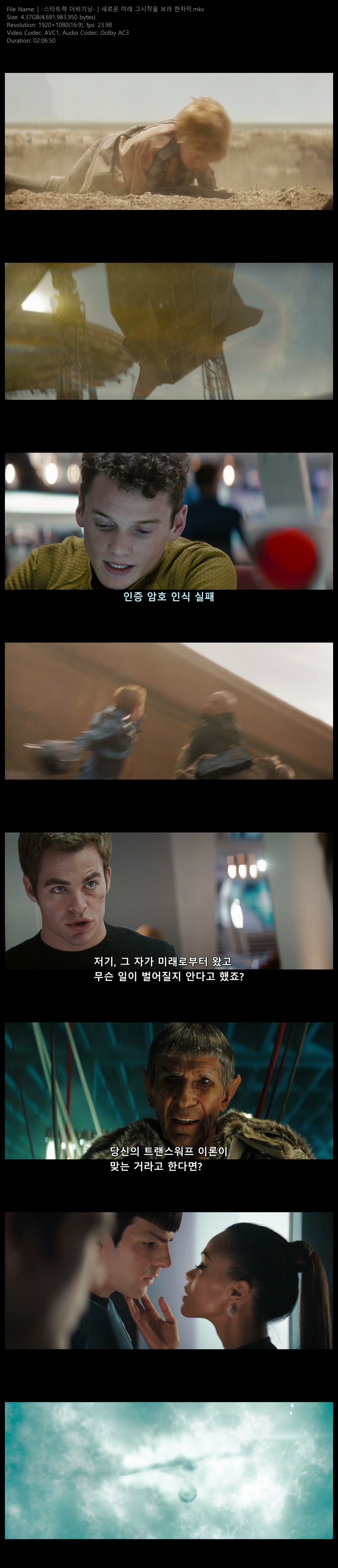 | - [ 스타트렉 더비기닝 ] 새로운 미래 그시작을 보라 한자막.mkv | 4.4 G | - | 1920x1080 |