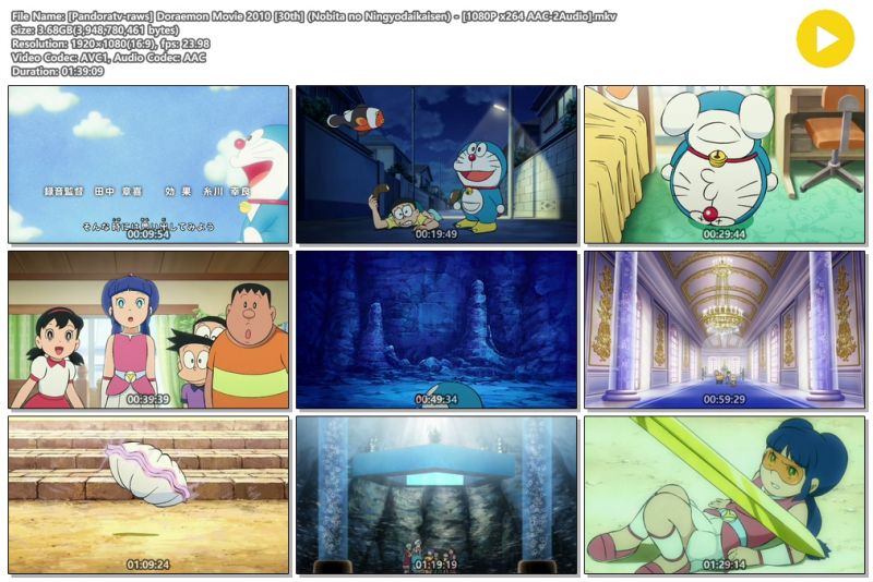 | [Pandoratv-raws] Doraemon Movie 2010 [30th] (Nobita no Ningyodaikaisen) - [1080P x264 AAC-2Audio].mkv | 3.7 G | - | 1920x1080 |