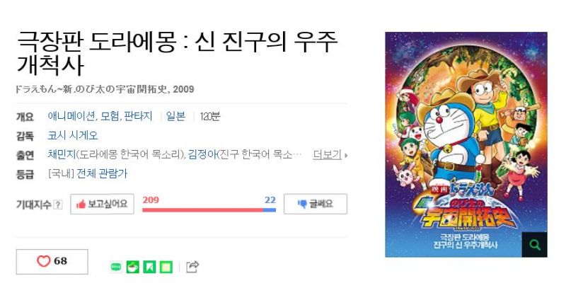 ico도라에몽 극장판 29기-신 진구의 우주개척사 (2009년)-우리말더빙 선택가능/