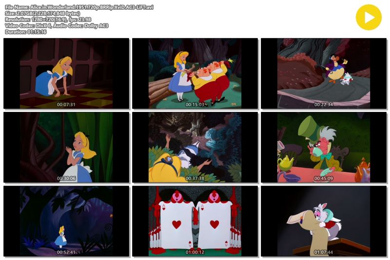 | Alice.in.Wonderland.1951.720p.BRRip.XviD.AC3-LiFT.avi | 2.1 G | - | 1280x720 |