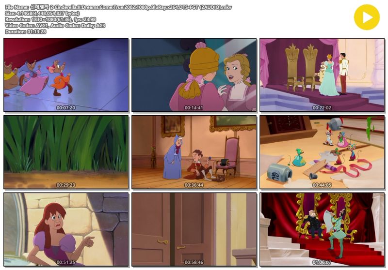 | 신데렐라 2 Cinderella.II.Dreams.Come.True.2002.1080p.BluRay.x264.DTS-FGT (2AUDIO).mkv | 4.1 G | - | 1920x1080 |