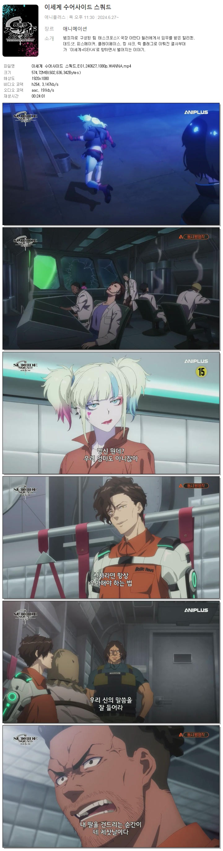 이세계 수어사이드 스쿼드.E01.240627.1080p.WANNA.mp4 574.7 M 00:24:01 1920x1080