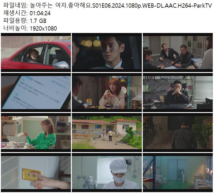 | 놀아주는 여자.좋아해요.S01E06.2024.1080p.WEB-DL.AAC.H264-ParkTV.mkv | 1.7 G | - | 1920x1080 |