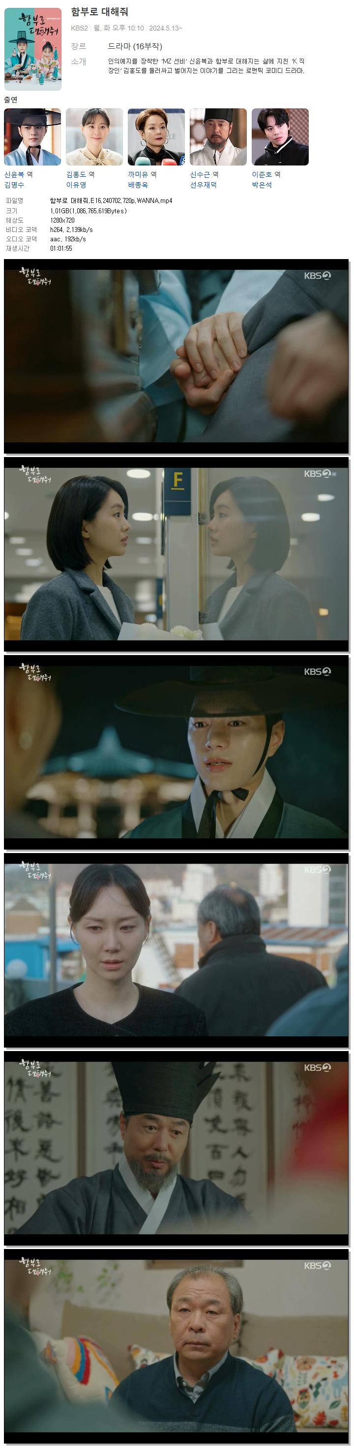 | 함부로 대해줘.E16.240702.720p.WANNA.mp4 | 1 G | 01:01:55 | 1280x720 |