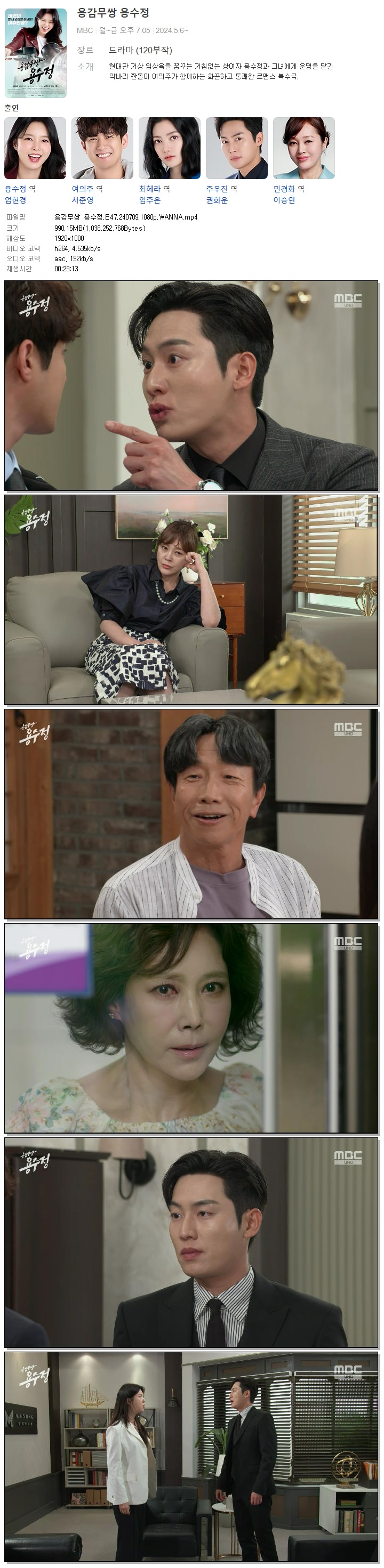 | 용감무쌍 용수정.E47.240709.1080p.WANNA.mp4 | 990.2 M | 00:29:13 | 1920x1080 |