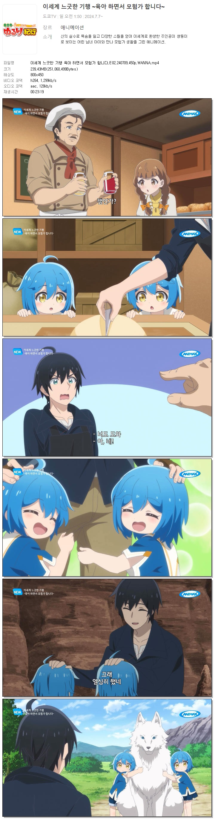 | 이세계 느긋한 기행 육아 하면서 모험가 합니다.E02.240709.450p.WANNA.mp4 | 239.4 M | 00:23:19 | 800x450 |