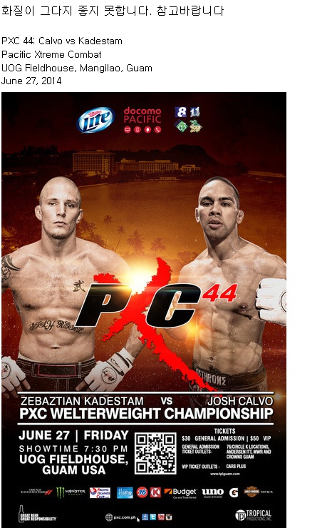 [MMA] PXC 44 Calvo vs Kadestam (김한솔 출전) - 2014.06.27 다시보기 토렌트