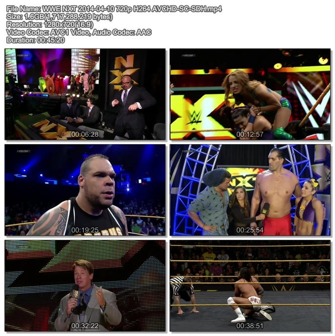 | WWE NXT 2014-04-10 720p H264 AVCHD-SC-SDH.mp4 | 1.6 G | - | 1280x720 |