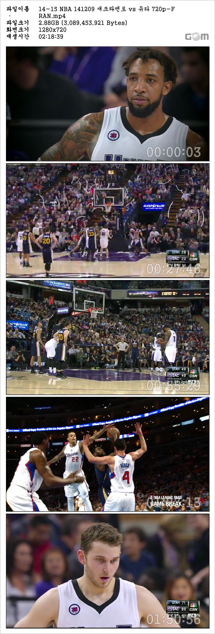 14-15 NBA 141209 새크라멘토 vs 유타 다시보기 토렌트