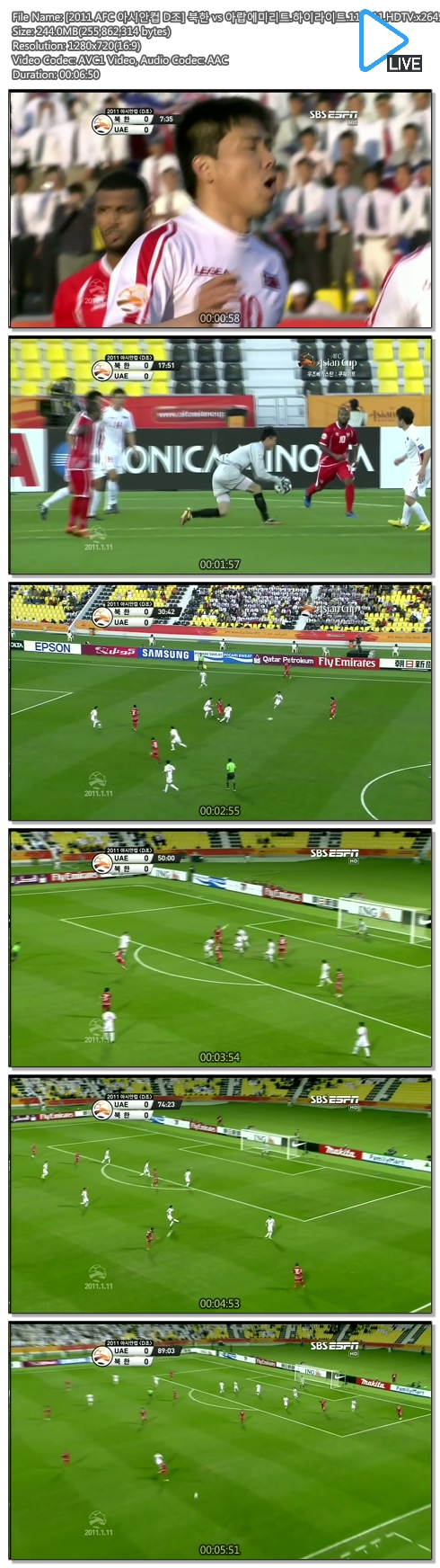 [2011 AFC 아시안컵 D조] 북한 vs 아랍에미리트.하이라이트.110111.HDTV.x264.720p-Spider.mp4 244 M - 1280x720