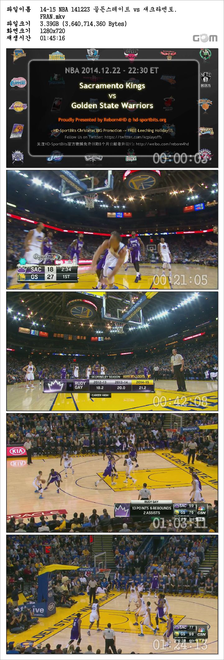 14-15 NBA 141223 골든스테이트 vs 새크라멘토 다시보기 토렌트