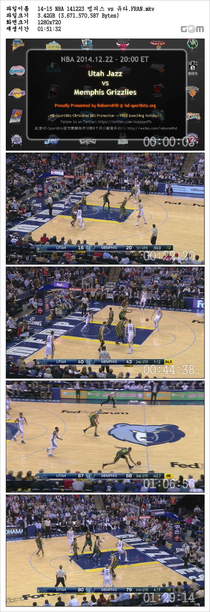 14-15 NBA 141223 멤피스 vs 유타 다시보기 토렌트