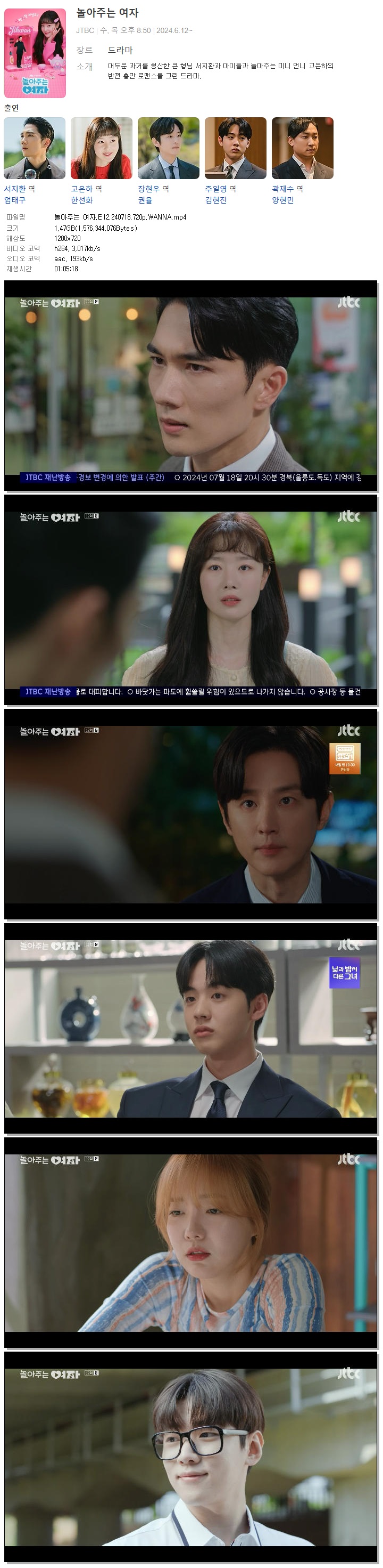 놀아주는 여자.E12.240718.720p.WANNA 다시보기 토렌트