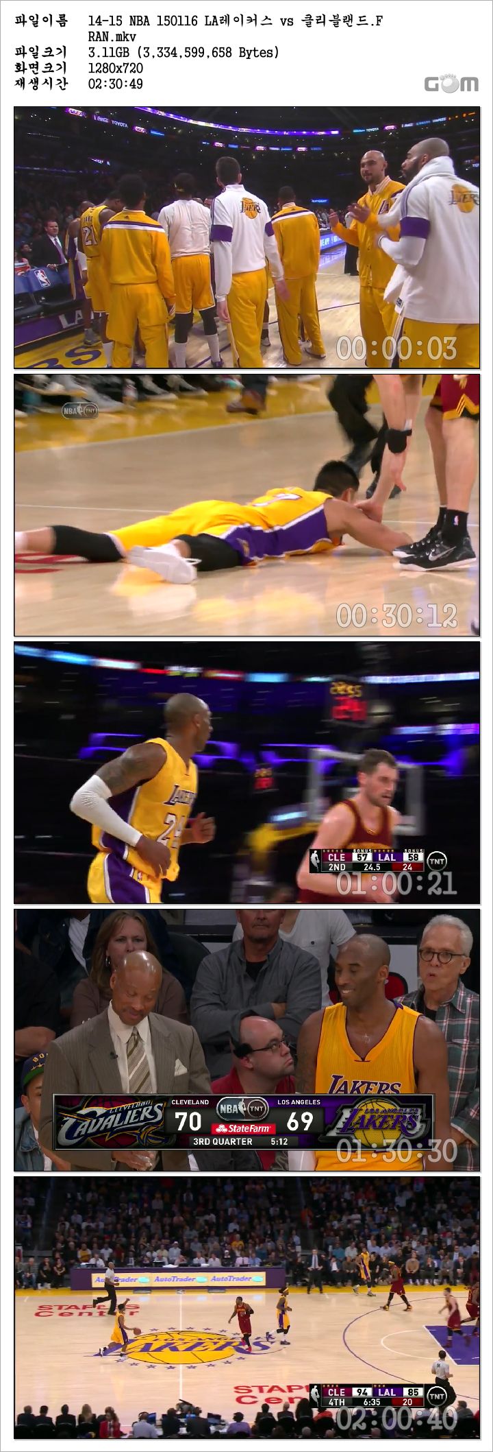 14-15 NBA 150116 LA레이커스 vs 클리블랜드 다시보기 토렌트