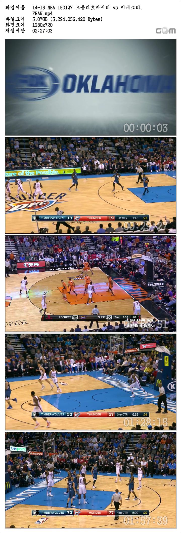 14-15 NBA 150127 오클라호마시티 vs 미네소타 다시보기 토렌트