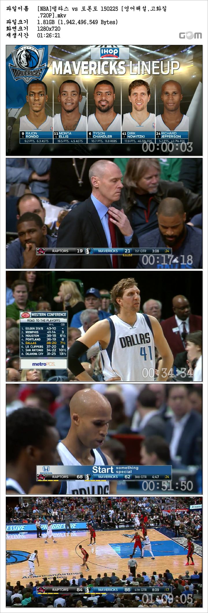 [NBA]댈라스 vs 토론토 150225 [영어해설,고화질,720P] 다시보기 토렌트