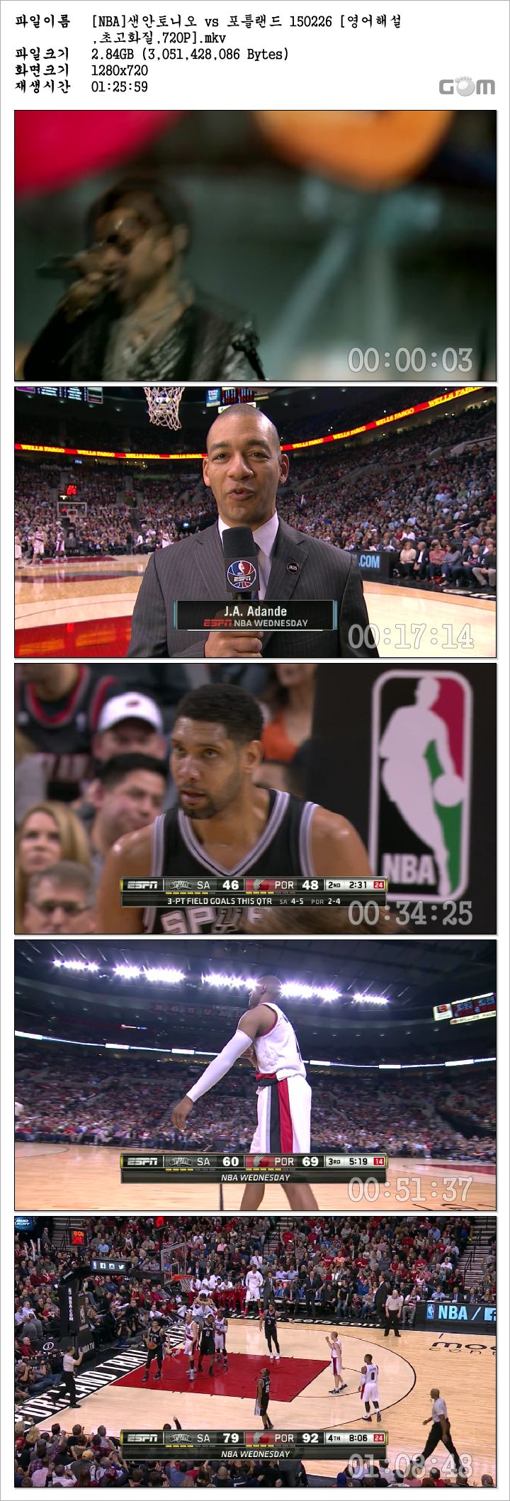 [NBA]샌안토니오 vs 포틀랜드 150226 [영어해설,초고화질,720P] 다시보기 토렌트