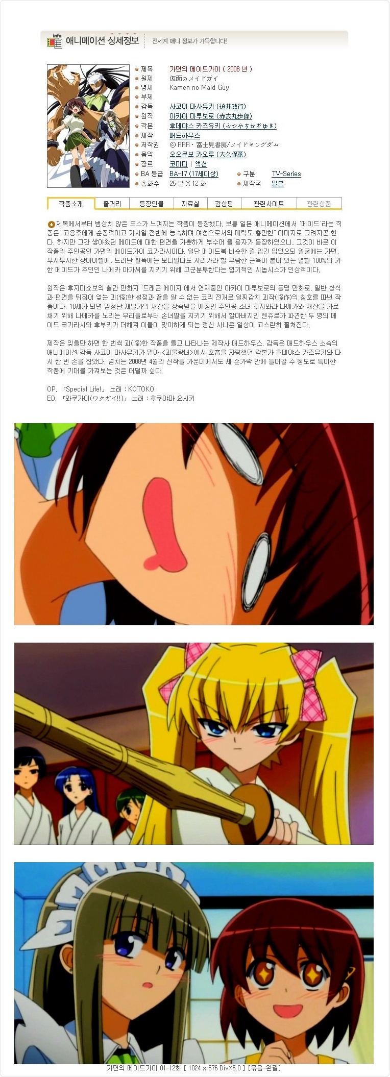 가면의 메이드가이 01-12화 [ 1024 x 576 DivX5.0 ] 다시보기 토렌트