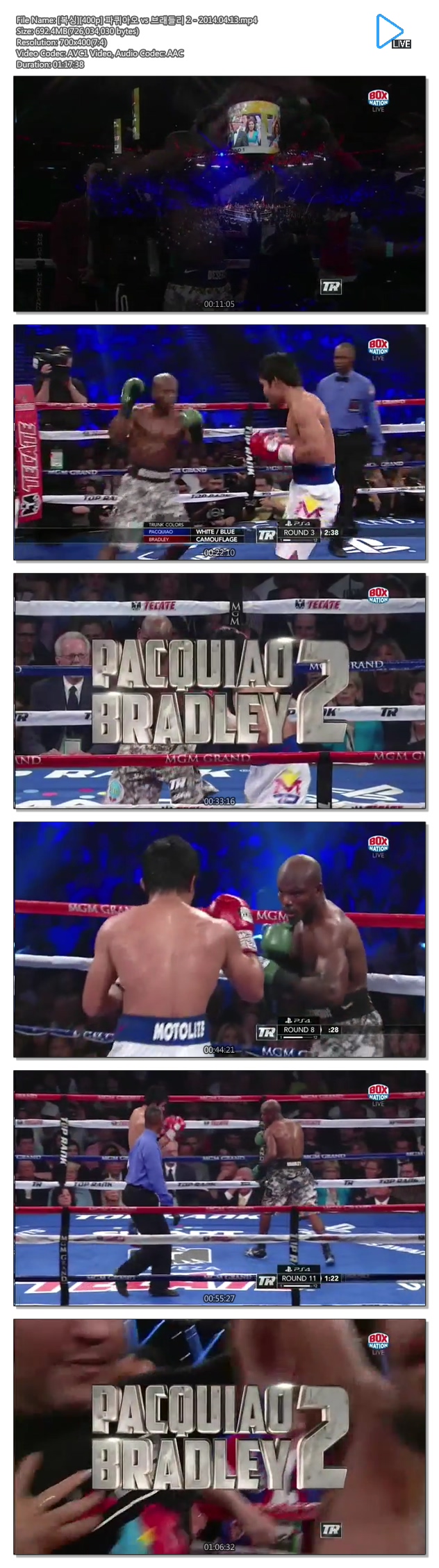 [복싱][400p] 파퀴아오 vs 브래들리 2 - 2014.04.13 다시보기 토렌트