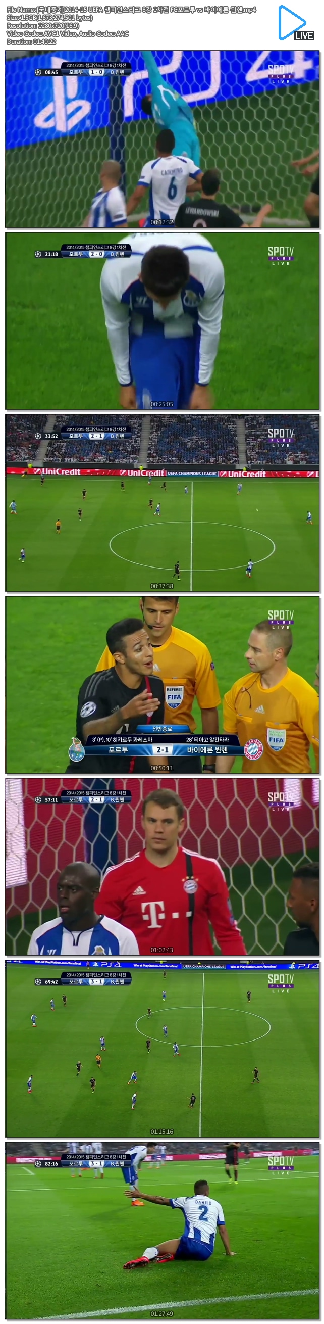 [국내중계]2014-15 UEFA 챔피언스리그 8강 1차전 FC포르투 vs 바이에른 뮌헨.mp4 1.6 G - -