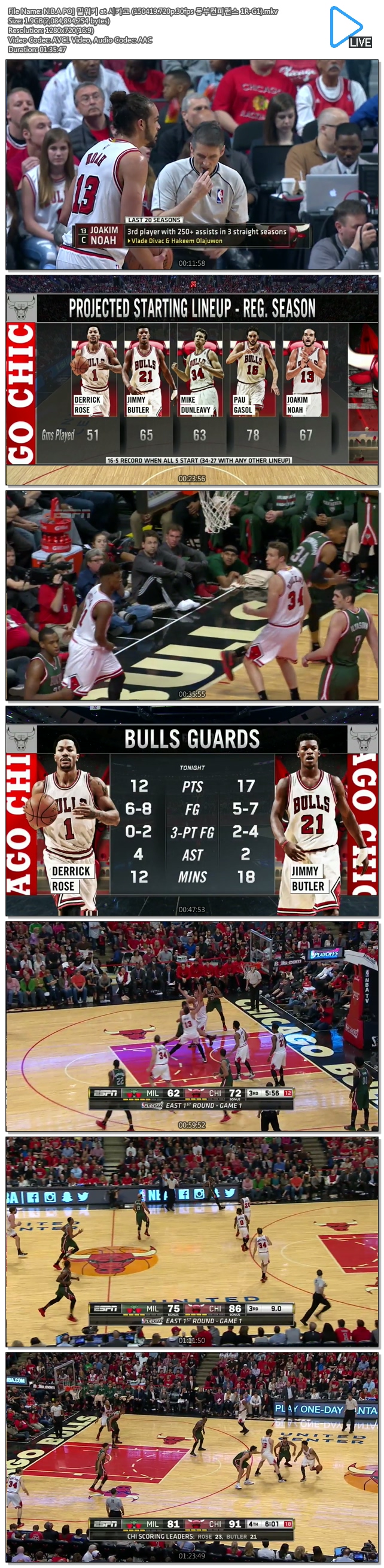icoN.B.A PO] 밀워키 at 시카고 (150419.720p.30fps 동부컨퍼런스 1R-G1)/