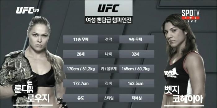 [ UFC 190 메인이벤트 ] 론다 로우지 vs 벳지 코헤이아 챔피언쉽.