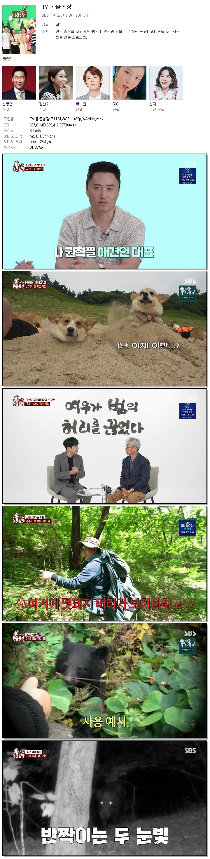 | TV 동물농장.E1184.240811.450p.WANNA.mp4 | 667 M | 01:05:56 | 800x450 |