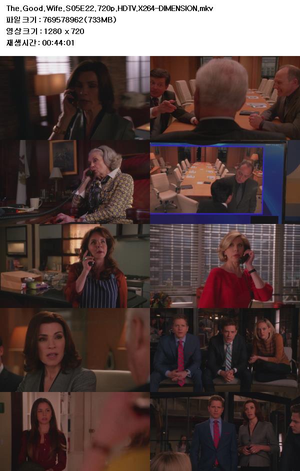 [한글자막] 굿 와이프 시즌5 22화 The.Good.Wife.S05E22.720p.HDTV.X264-DIMENSION [고화질] 다시보기 토렌트