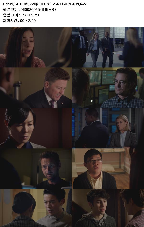 [한글자막] 크라이시스 시즌1 9화 Crisis.S01E09.720p.HDTV.X264-DIMENSION [고화질] 다시보기 토렌트