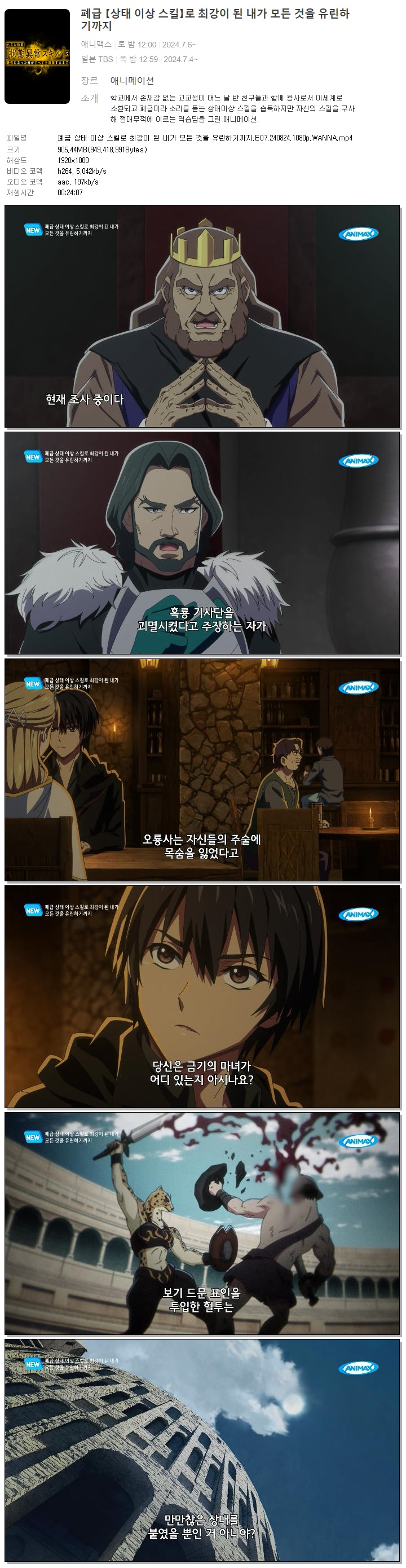 폐급 상태 이상 스킬로 최강이 된 내가 모든 것을 유린하기까지.E07.240824.1080p.WANNA.mp4 905.4 M 00:24:07 1920x1080
