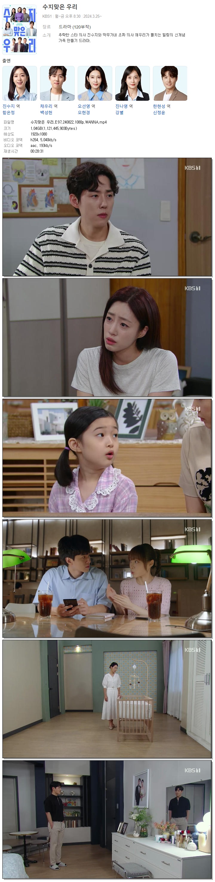 | 수지맞은 우리.E97.240822.1080p.WANNA.mp4 | 1 G | 00:28:31 | 1920x1080 |