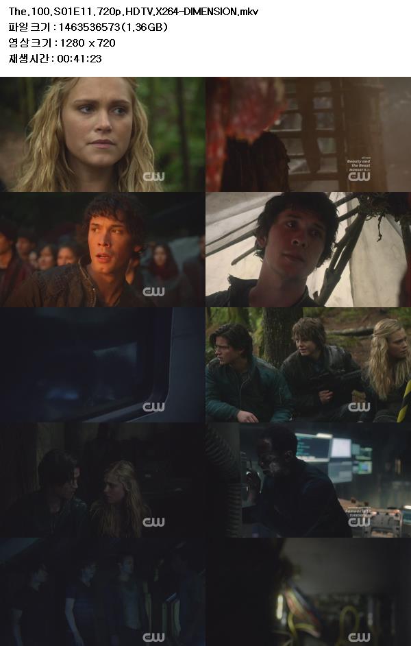 [한글자막] 더 100 The 100 시즌1 11화 The.100.S01E11.720p.HDTV.X264-DIMENSION [고화질] 다시보기 토렌트