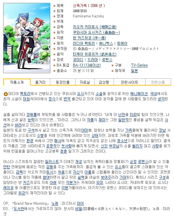 [5225] 신족가족 01화~13화(완) [704x396 XviD] 다시보기 토렌트
