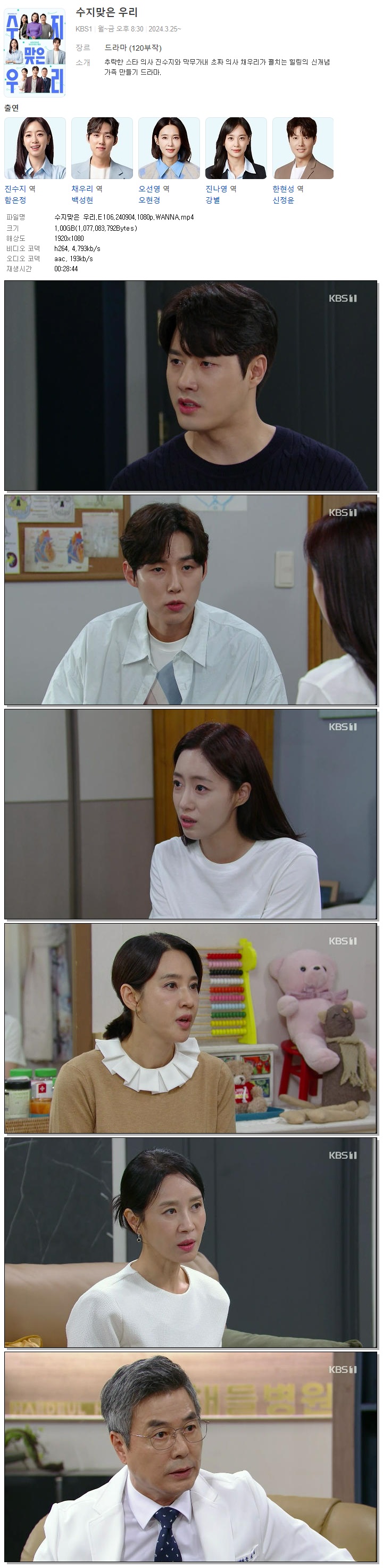 | 수지맞은 우리.E106.240904.1080p.WANNA.mp4 | 1 G | 00:28:44 | 1920x1080 |