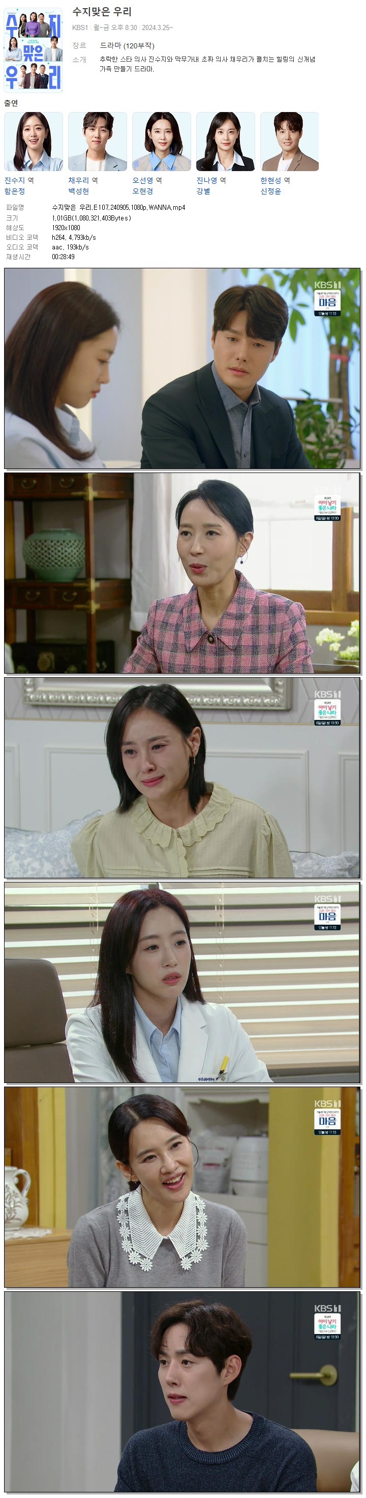 | 수지맞은 우리.E107.240905.1080p.WANNA.mp4 | 1 G | 00:28:49 | 1920x1080 |