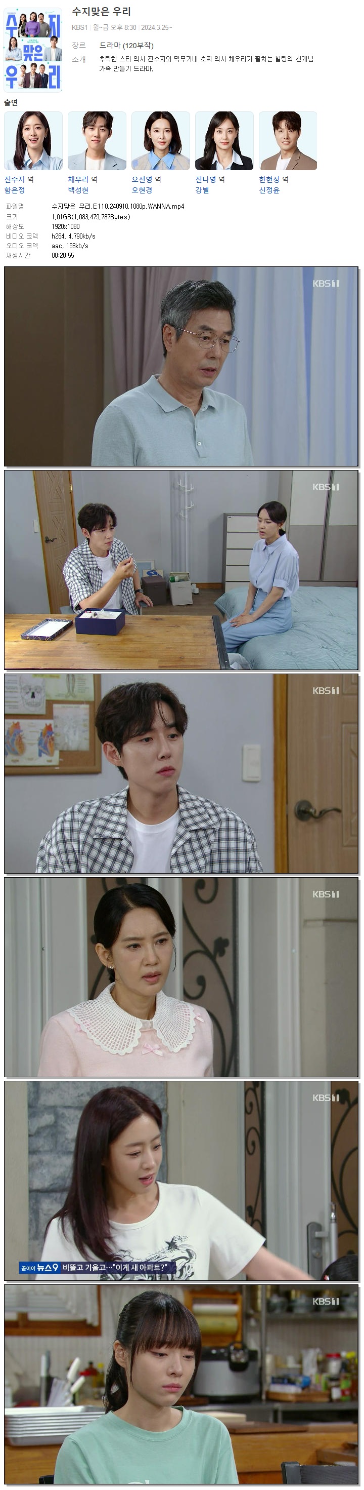 | 수지맞은 우리.E110.240910.1080p.WANNA.mp4 | 1 G | 00:28:55 | 1920x1080 |