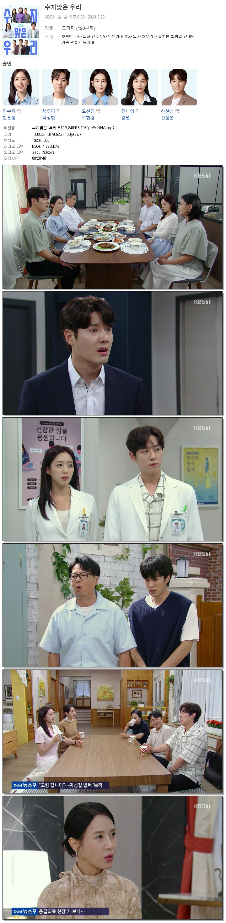 수지맞은 우리.E113.240913.1080p.WANNA.mp4 1 G 00:28:48 1920x1080