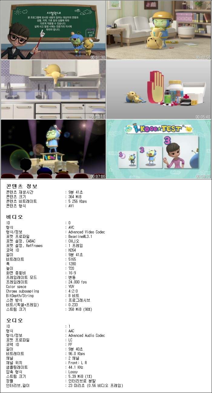 파일명 용량 재생시간 해상도