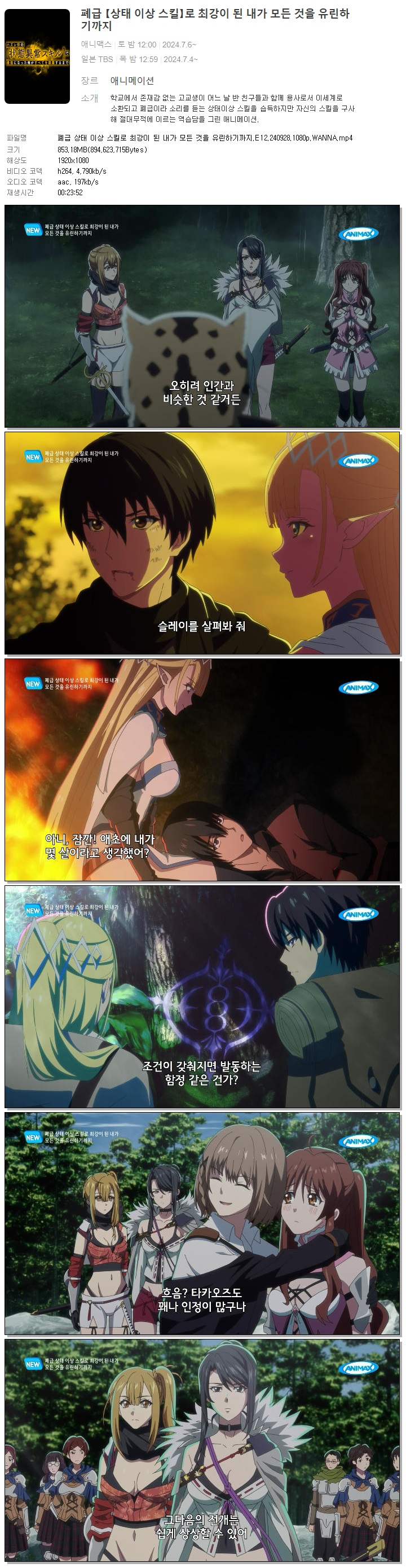 폐급 상태 이상 스킬로 최강이 된 내가 모든 것을 유린하기까지.E12.240928.1080p.WANNA.mp4 853.2 M 00:23:52 1920x1080