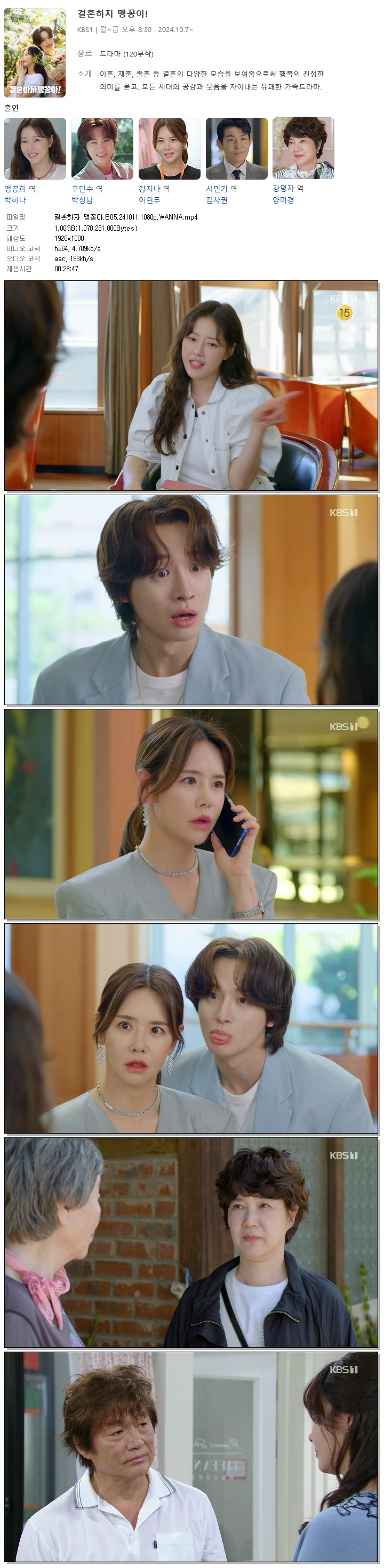 결혼하자 맹꽁아.E05.241011.1080p.WANNA.mp4 1 G 00:28:47 1920x1080