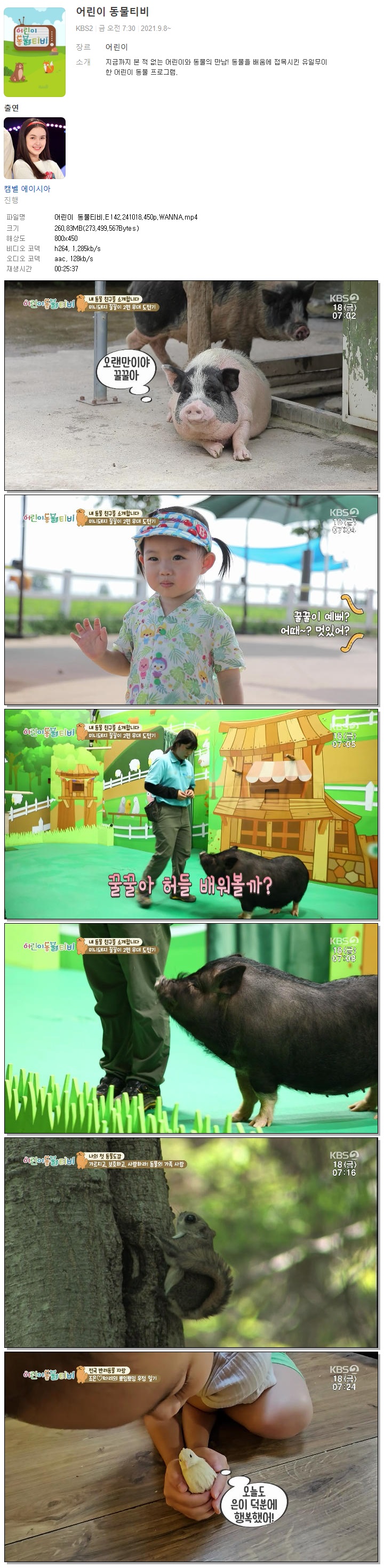 | 어린이 동물티비.E142.241018.450p.WANNA.mp4 | 260.8 M | 00:25:37 | 800x450 |
