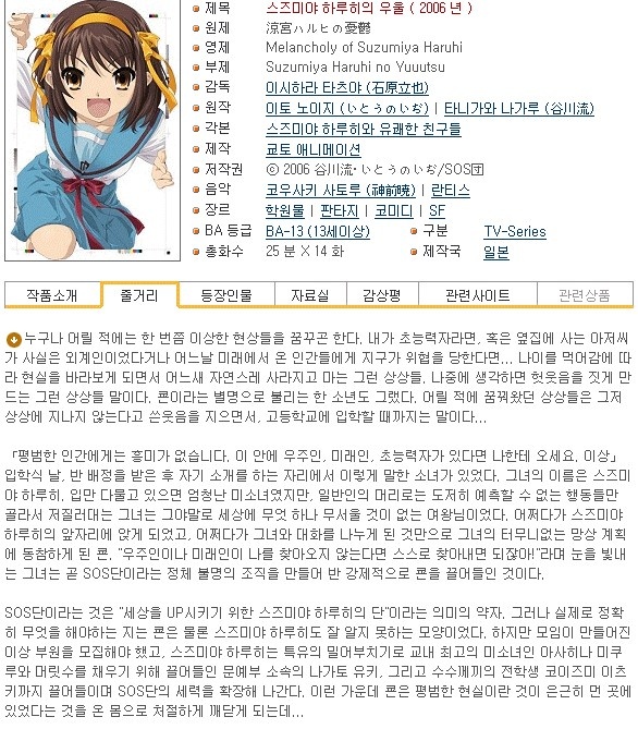 ico스즈미야 하루히의 우울 01화~14화 (완) + 영상특전/