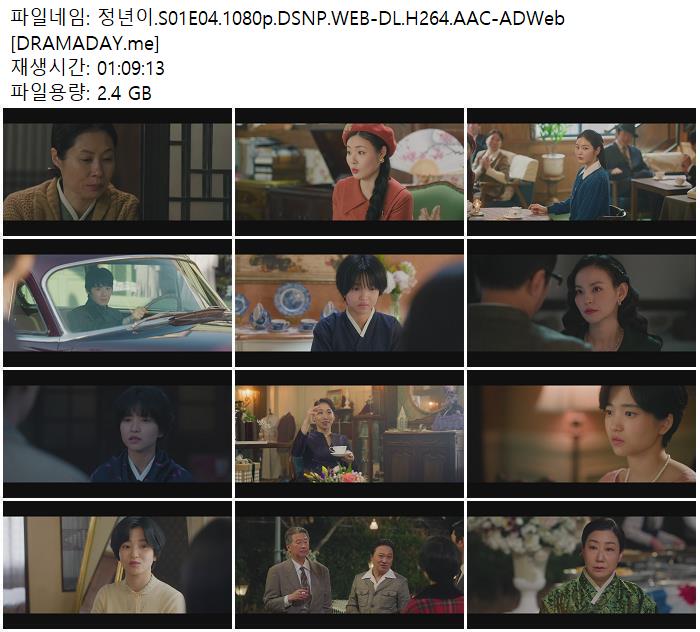 | 정년이.S01E04.1080p.DSNP.WEB-DL.H264.AAC-ADWeb [DRAMADAY.me].mkv | 2.4 G | - | 1920x1080 |