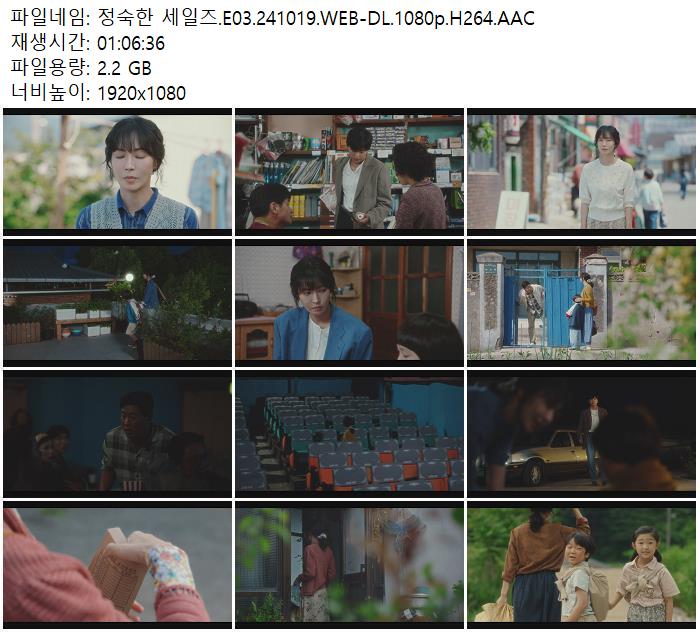 | 정숙한 세일즈.E03.241019.WEB-DL.1080p.H264.AAC.mkv | 2.2 G | - | 1920x1080 |